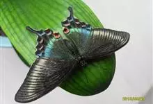 玉斑凤蝶Papilio helenus 别名白纹凤蝶,是凤蝶科凤蝶属美凤蝶亚属大型种类。雌雄同型;体翅皆黑色,后翅正面中室外有3个并列的白色斑,亚外缘有1列模糊的新月形红色斑,…全部>>