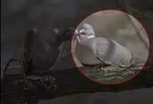 岩鸽是鸽形目鸠鸽科鸽属鸟类。雄鸟灰色,头颈部至上胸为石板蓝灰色,颈基和上胸缀有带金属光泽的蓝绿色,颈后和上胸形成带紫红色金属光泽的颈环;上背和肩灰色,下背白色,腰和尾上覆羽灰褐色,尾深灰褐色,先端黑色,…全部>>