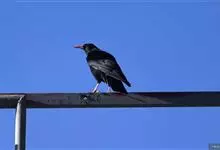 红嘴山鸦,是脊索动物门鸟纲雀形目鸦科鸟类。红嘴山鸦的成鸟通体羽毛纯黑色具有蓝色金属光泽,翼和尾泛有蓝绿色金属光泽;虹膜暗褐色,喙较为尖细,并且呈镰状下弯,喙和脚朱红色。…全部>>