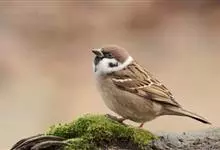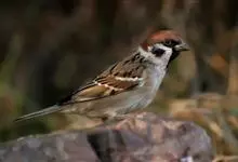 家麻雀:共有13个亚种。是小型鸟类,体长14-16厘米。背栗红色具黑色纵纹,两侧具皮黄色纵纹;颏、喉和上胸黑色,脸颊白色,其余下体白色,翅上具白色带斑。雄鸟与树麻雀的区别在顶冠及尾上覆羽灰色,耳无黑…全部>>