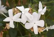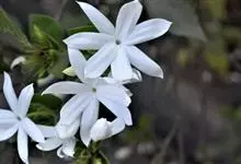 素馨花,木犀科素馨属多年生的攀援灌木植物。攀援灌木,小枝圆柱形,具棱或沟;叶对生,叶轴常具窄翼,小叶片卵形或长卵形;聚伞花序顶生或腋生,花序梗长,苞片线形,花萼无毛,裂片锥状线形,花冠白色,…全部>>