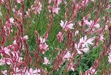 山桃草是柳叶菜科、山桃草属植物。多年生宿根草本。高60-100厘米,叶无柄,椭圆状披针形或倒披针形,花期晚春至初秋;多花型,花蕾白色略带粉红,初花白色,谢花时浅粉红。花紫红色,成密生的穗状花序,…全部>>