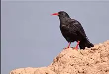 红嘴山鸦,是脊索动物门鸟纲雀形目鸦科鸟类。红嘴山鸦的成鸟通体羽毛纯黑色具有蓝色金属光泽,翼和尾泛有蓝绿色金属光泽;虹膜暗褐色,喙较为尖细,并且呈镰状下弯,喙和脚朱红色。…全部>>