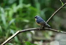 棕胸蓝姬鹟:属小型鸣禽,体长10-13厘米,体重6-10克,是一种体型很小的灰蓝及棕色鹟,雌雄羽色不同,雄鸟羽色艳丽,雌鸟羽色暗淡。雄鸟上体深蓝色,胸橙黄色,下腹灰白色。亚成鸟具褐色斑驳。…全部>>