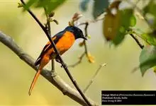 灰喉山椒鸟:共有8个亚种。体长18-22厘米。雄鸟头部和背亮黑色,腰、尾上覆羽和下体朱红色,翅黑色具一大一小的两道朱红色翼斑。中央尾羽黑色,外侧尾羽基部黑色,端部红色。…全部>>