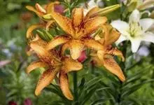 青岛百合是百合科百合属的多年生草本植物;鳞茎近球形;鳞片披针形,白色,无节;叶轮生,矩圆状倒披针形、倒披针形至椭圆形,先端急尖,基部宽楔形,具短柄,两面无毛;苞片叶状,披针形;花橙黄色或橙红色,…全部>>
