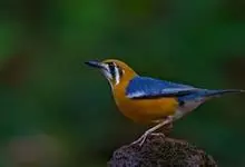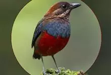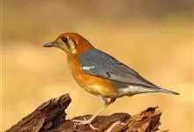 橙头地鸫是鸫科、地鸫属中型鸟类,体长18-22厘米。整个头、颈和下体橙栗色,其余上体包括两翅和尾蓝灰色或橄榄灰色,翅上多具白色翅斑。虹膜褐色或棕褐色,嘴黑褐色或黑色,脚橙黄色或肉黄色。特征极明显。…全部>>