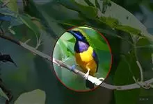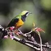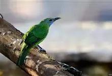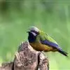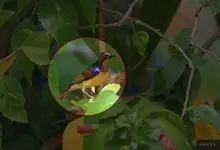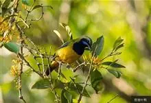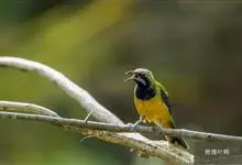 橙腹叶鹎体形大小和金额叶鹎相似,体长16~20厘米。额至后颈黄绿色,其余上体绿色,小覆羽亮钴蓝色,形成明显的肩斑。颏、喉、上胸黑色具钴蓝色髭纹,其余下体橙色。飞羽和尾羽雄鸟黑色、雌鸟绿色。…全部>>
