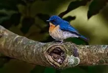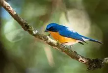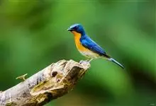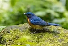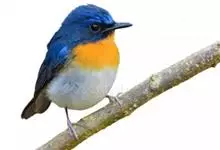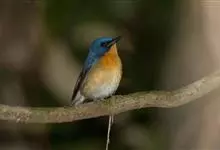 山蓝仙鹟:小型鸟类,体长13-15厘米。雄鸟额基和眼先黑色,颏橙棕色,仅颏尖为蓝黑色,喉、胸、上腹和两胁亦为橙棕色,下体白色范围较小,仅局限于下腹和尾下覆羽。雌鸟上体少黄色,颏、喉、胸概为锈红色,…全部>>
