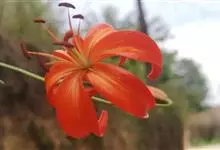 山丹是百合科百合属的多年生草本植物。鳞茎卵形或圆锥形,鳞片长圆形或长卵形,白色;叶散生茎中部,线形,边缘有乳头状突起;花单生或数朵成总状花序,花鲜红色,常无斑点,花被片反卷,…全部>>