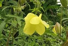 黄葵是锦葵科秋葵属的一年生或二年生草本植物。植株高1-2米,被粗毛;叶通常掌状深裂,裂片披针形至三角形,边缘具不规则锯齿,偶有浅裂似械叶状,两面均疏被硬毛,叶柄疏被硬毛;花单生于叶腋间,…全部>>
