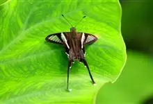亚历山大女皇鸟翼凤蝶,又称大鸟翼蝶,是鳞翅目凤蝶科鸟翼蝶属蝴蝶;翅膀圆阔、褐色,雌性翅膀上会点缀着耀眼的白色斑纹;雄性翅膀上则闪耀着红蓝色的光泽。亚历山大女皇鸟翼凤蝶幼时很黑,身上长有红色的结节,…全部>>