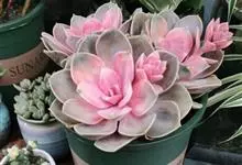 紫珍珠是景天科石莲花属的多年生肉质草本植物。植株中小型;叶片肉质,匙形,呈莲座状紧密排列;叶片粉紫色,叶缘呈粉白色,光照充足时颜色亮丽,不足时叶色会呈现深绿色或灰绿色,叶面光滑,被轻微白粉,…全部>>