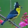 台湾黄山雀体长约13厘米。头顶至后颈黑色,有一长的黑色羽冠,羽冠末端和后颈中央白色。背苍绿色,两翅和尾黑色,羽缘蓝灰色,外侧尾羽白色。额基和下体鲜黄色,尾下覆羽白色,雄鸟腹部有一黑斑。…全部>>
