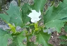 曼陀罗,茄科曼陀罗属一年生大型草本植物,全株光滑。有臭气;叶呈广卯形,边缘具不规则波状浅齿裂;花单生于枝杖间或叶腋,直立,有短梗;花萼是筒状裂片三角形,颜色为白色或淡紫色;果实为蒴果卵状,…全部>>