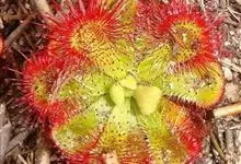 茅膏菜茅膏菜科茅膏菜属多年生草本植物,高32厘米。鳞茎状球茎紫色地上常直无毛,茎顶多分枝;基生叶密集成近一轮,叶片半月形;聚伞花序生于枝顶,白色或红色,种子椭圆形;花果期6-9月。茅膏菜为变种,…全部>>
