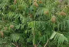 漆 F. A. Barkley)是漆树科、漆树属落叶乔木。树皮灰白色,粗糙,小枝粗壮;顶芽大而显著。奇数羽状复叶互生,有小叶4-6对;叶柄被微柔毛,近基部膨大,半圆形,上面平;小叶膜质至薄纸质,…全部>>
