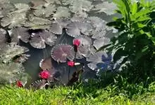 红花睡莲,多年生浮水植物。叶浮于水面,卵形,革质,表面绿色,背面紫红色,幼叶红色,花昼开夜合,浮于水面挺出水面,中午开得最大,半夜闭合,故名“子午莲”,花瓣多数,花红色,花期7—8月。原产欧洲及北非…全部>>
