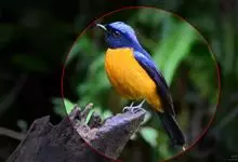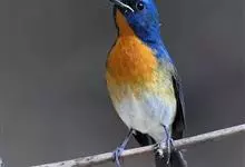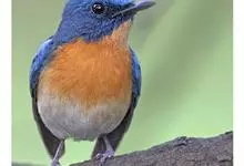 棕腹大仙鹟:体重24-28克,体长15-17厘米,是一种小型的色彩亮丽的鹟。雄鸟上体深蓝,下体棕色,脸黑,额、颈侧小块斑、翼角及腰部亮丽闪辉蓝色。与棕腹仙鹟易混淆,区别在色彩较暗。雌鸟灰褐,…全部>>