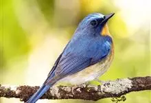 山蓝仙鹟:小型鸟类,体长13-15厘米。雄鸟额基和眼先黑色,颏橙棕色,仅颏尖为蓝黑色,喉、胸、上腹和两胁亦为橙棕色,下体白色范围较小,仅局限于下腹和尾下覆羽。雌鸟上体少黄色,颏、喉、胸概为锈红色,…全部>>