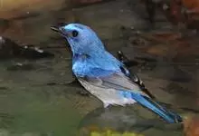 海南蓝仙鹟,Cyornis hainanus ,鹟科蓝仙鹟属的一种小型鸟类,体长13~15厘米。上体包括两翅和尾表面暗蓝色,前额和眼上眉斑较鲜亮。喉、胸暗蓝色,下胸和两胁蓝灰色,其余下体白色。…全部>>