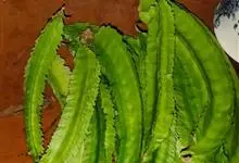 四棱豆 DC.)是豆科四棱豆属一年生或多年生攀援草本植物。茎长2-3米,有块根,叶柄较长,小叶卵状三角形;花序腋生,花瓣为浅蓝色;荚果四棱状,为黄绿或绿色,有时具有红色斑点,有锯齿边缘;种子8-17个,…全部>>