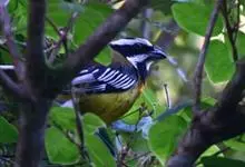 大山雀是山雀科、山雀属的中小型鸟类,体长13-15厘米,翼展23-26厘米,体重16-21克。是黑、灰及白色山雀。头及喉辉黑色,与脸侧白斑及颈背块斑成强对比;翼上具一道醒目的白色条纹,…全部>>