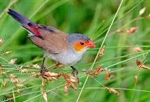 橙颊梅花雀体长约10厘米,头部灰色,两侧有大块橙色区域,嘴基及眼下方有黑纹,两条黑纹间呈白色,颊部有橙红色块斑,喙为红色至橙红色,背部及翼为褐色,腰为鲜红色,身体腹面淡灰色,腹部白色至皮黄色,…全部>>
