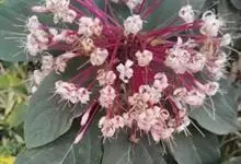 烟火树 Merr.)是唇形科、大青属常绿灌木或小乔木,株高可达4米。幼枝方形,墨绿色。叶对生,长椭圆形或披针形,先端尖,全缘或波状缘。纸质,叶背暗紫红色。聚伞状圆锥花序,顶生,小花多数,聚生成团,…全部>>