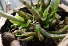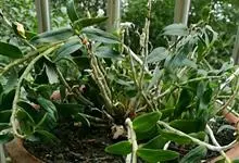 翅梗石斛:茎丛生,肉质状粗厚,呈纺锤形或有时棒状,不分枝,具3-5节,干后金黄色。叶厚革质,3-4枚近顶生,长圆形。总状花序出自具叶的茎中部或近顶端,常具2朵花,花下垂,不甚开展,质地厚,…全部>>