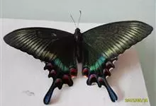 绿带翠凤蝶,又名深山凤蝶,为凤蝶科凤蝶属下的一种。分布于韩国、日本、中国台湾、中国大陆等地。翅黑色,满布金绿色鳞片。前翅亚缘具黄绿色横带纹。后翅外缘有6个略呈新月形的红斑,…全部>>
