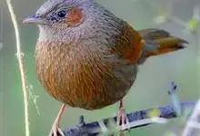 灰胸薮鹛是噪眉科、薮鹛属小型鸟类。体长15-20厘米。头顶灰色,前额和眉纹、后颈和颈侧橘黄色,耳羽和下体灰色,腹中黄色。上体灰橄榄黄色,飞羽黑色具红色和黄色翅斑。尾橄榄褐色具黑色横斑和红色端斑,…全部>>