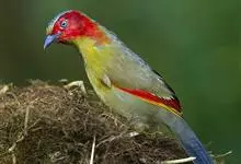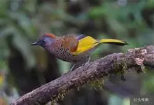 红头噪鹛中型鸟类,体长22~28厘米。头顶棕红色,眼先、脸、颏、喉黑色,上体橄榄色或棕橄榄褐色,外侧飞羽金黄色,尾羽基部亦为金黄色,下体多为暗橄榄褐色。该种和赤尾噪鹛较为相似,…全部>>
