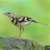 日本鹡鸰:体长约20厘米。上体多黑色,额、颏及眉纹白,下体白,两翼黑而具白色横斑及羽缘,尾黑而边缘白色。虹膜深褐色;嘴黑色;脚黑色。飞行时发出嘁喳声,具复杂而独特的鸣声。喜农田、稻田和溪流。…全部>>