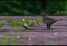 家麻雀:共有13个亚种。是小型鸟类,体长14-16厘米。背栗红色具黑色纵纹,两侧具皮黄色纵纹;颏、喉和上胸黑色,脸颊白色,其余下体白色,翅上具白色带斑。雄鸟与树麻雀的区别在顶冠及尾上覆羽灰色,耳无黑…全部>>