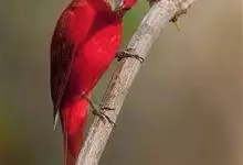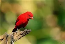 血雀雀科朱雀属鸟类,体重36-49克;体长155-182毫米。雄鸟除眼先、翼与尾为黑色外,通体为鲜红色;嘴鲜黄;雌鸟暗橄榄绿色,羽端较淡或带黄色;腰鲜黄;嘴较暗。虹膜褐色;嘴黄色;腿和脚褐色。…全部>>