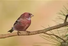 藏朱雀:全长约17-18厘米。雄鸟头部深红色具光辉,喉部暗红色具白色点斑;背部灰白色,各羽具玫瑰红色羽端,形成许多斑纹;腰部淡玫瑰红色;翅暗褐色,沾灰白,羽端沾玫瑰红或灰白色;尾暗棕色,端缘玫瑰红色…全部>>