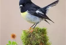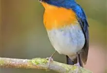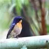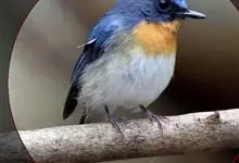 山蓝仙鹟:小型鸟类,体长13-15厘米。雄鸟额基和眼先黑色,颏橙棕色,仅颏尖为蓝黑色,喉、胸、上腹和两胁亦为橙棕色,下体白色范围较小,仅局限于下腹和尾下覆羽。雌鸟上体少黄色,颏、喉、胸概为锈红色,…全部>>