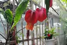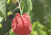 红萼苘麻是锦葵科、苘麻属常绿软木质灌木,叶绿色,长5-10厘米,心形,叶端尖,叶缘有钝锯齿,有时分裂,有细细的叶柄;叶互生,掌状叶脉;花单生于叶腋,具长梗,下垂;花萼红色,半套着大约4厘米长的花瓣,…全部>>