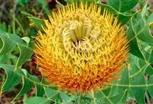 帝王花,山龙眼科帝王花属多年生常绿灌木植;茎干粗壮,叶色翠绿光亮;花朵呈圆球状;其苞片有的完全打开,使花朵呈扁平状;有的则呈半闭合状态,使花朵相对修长,…全部>>