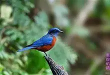 栗腹矶鸫是鸫科、矶鸫属小型鸟类,体长20-25厘米。雄鸟上体呈辉亮的钴蓝色,两翅黑褐色,喉蓝黑色,其余下体栗红色。雌鸟上体橄榄褐色,背具黑色鳞状斑,下体棕白色密杂以黑褐色横斑,黑白相衬,极为醒目,…全部>>