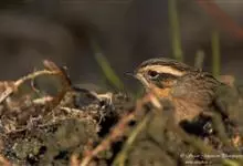 棕眉山岩鹨是岩鹨科、岩鹨属小型鸟类,体长13-16厘米。头和头侧黑色,有一长而宽阔的皮黄色眉纹从额基一直向后延伸至后头侧,在黑色的头部极为醒目。背、肩栗褐色具黑褐色纵纹。两翅黑褐色,翅上有黄白色翅斑。…全部>>