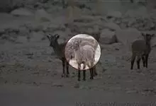 盘羊:雄性肩高可达120厘米,体重可达200千克。雄性的弯角粗大,长达1米以上,向下扭曲呈螺旋状,外侧有环棱;雌性的角非常短,而且弯度不大。毛的颜色从淡棕色至白灰色,胸、腹部的颜色浅一些。脖子白色,…全部>>