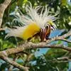 大极乐鸟是极乐鸟属中最大的鸟种。成年雄鸟体长可达到43厘米,雌性可达35厘米。雄鸟的额、颊、喉等墨绿色;头、颈黄色;上体暗赤栗色;腹部葡萄红色,胁部有长饰羽,其基部橙黄,中部黄色,…全部>>