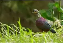 灰林鸽,为鸠鸽科、鸽属的鸟类。灰林鸽体型中等,体长35-40厘米,头灰色、喉中央白色,颈部有淡肉黄色鳞状斑形成的颈环。上背黑褐色,具绿紫色金属光泽,下背至尾黑色。胸灰褐色,腹暗黄色,尾下覆羽皮黄色,…全部>>