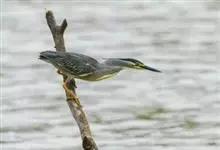 绿鹭:是鹳形目鹭科绿鹭属鸟类。体型小,头顶黑,枕冠亦黑色,上体蝉灰绿色,下体两侧银灰色;前额至后枕及冠羽墨绿色,眼后有一白斑,颊纹黑色;颚纹白色,后颈、颈侧和体侧烟灰色;背部披灰绿色矛状长羽,…全部>>