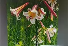 麝香百合:在中国台湾亦称铁炮百合。鳞茎球形或近球形,高2.5-5厘米;鳞片白色。茎高45-90厘米,绿色,基部为淡红色。叶散生,披针形或矩圆状披针形,两面无毛。花单生或2-3朵;花喇叭形,白色,筒外…全部>>