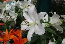 麝香百合:在中国台湾亦称铁炮百合。鳞茎球形或近球形,高2.5-5厘米;鳞片白色。茎高45-90厘米,绿色,基部为淡红色。叶散生,披针形或矩圆状披针形,两面无毛。花单生或2-3朵;花喇叭形,白色,筒外…全部>>