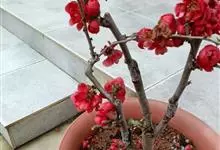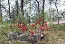 贴梗海棠Nakai)是蔷薇科、木瓜海棠属植物。落叶灌木,高达2米,枝条直立开展,有刺。叶片卵形至椭圆形,稀长椭圆形,长3-9厘米,宽1.5-5厘米。花先叶开放,3-5朵簇生于二年生老枝上。…全部>>