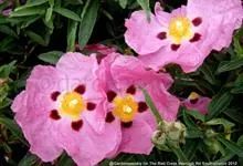 岩蔷薇是半日花科岩蔷薇属植物,多年生直立亚灌木,高约1.5-2.5米,全体具胶黏腺体。枝条褐色,侧枝分为生长枝和结果枝。单叶对生,披针形至线状披针形,长5-8厘米,宽0.5-1.5厘米。…全部>>
